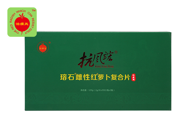 “抗風竤”選自世界尖端純雌性紅蘿卜品種——“9801-79A”,具有極高的細胞密度和極為豐富的活性酶,單位體積的營養(yǎng)含量超過其它品種幾十倍,這是普通蘿卜所無法比擬的。抗風竤 · 東北雌性紅蘿卜及纓子濃縮原粉獲國家發(fā)明專利(專利號:ZL2009 1 248652.6),抗風紅·東北雌性紅蘿卜及纓子中維生素K的含量遠高于其他食物,維生素K具有溶解痛風石的作用。